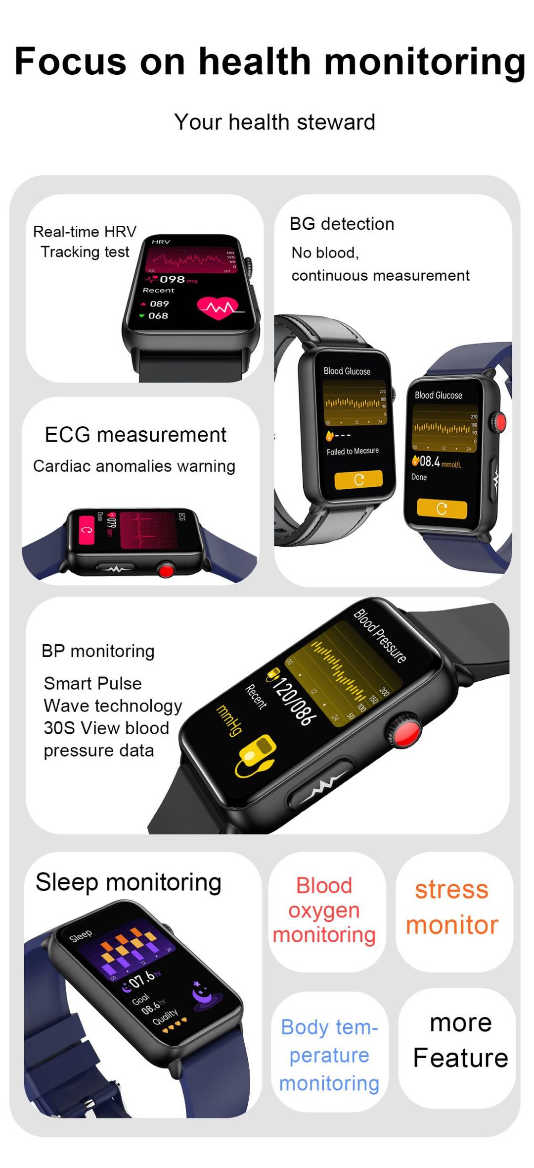 Smartwatch 1.57Inch ECG Sport Smart Watch BT Call Sleep Monitor Waterproof Wearable Devices
